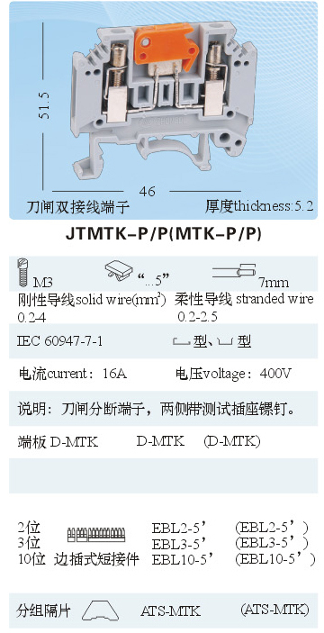 JTMTK-P/P(MTK-P/P)通用接線端子