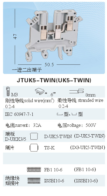 JTUK5-TWIN(UK5-TWIN)通用接線端子