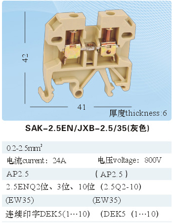 SAK-2.5EN/JXB-2.5/35(灰色)通用接線端子