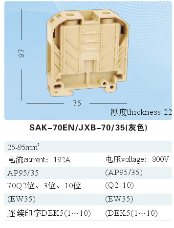 SAK-70EN/JXB-70/35(灰色)通用接線端子