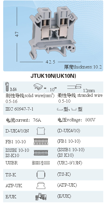 JTUK10N(UK10N)通用接線端子