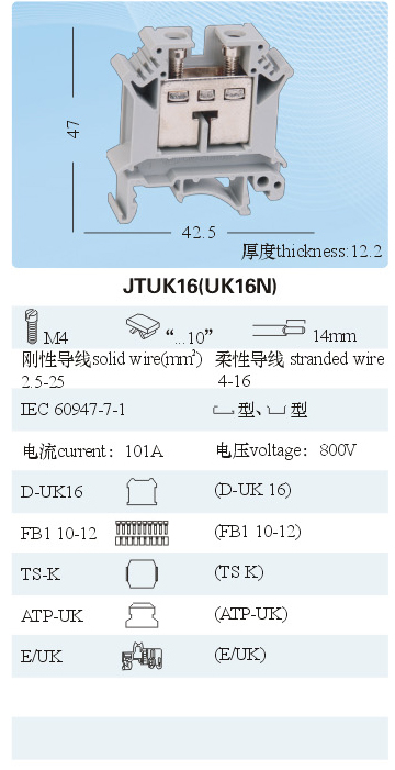 JTUK16(UK16N)通用接線端子